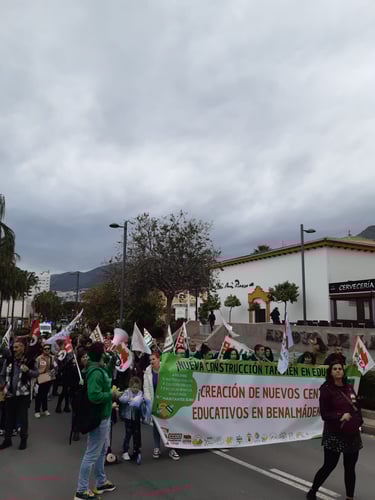 El pasado miércoles 12 de marzo, la comunidad educativa de Benalmádena, junto con las AMPAS y sindicatos, se manifestó en las calles de Arroyo de la Miel para exigir la construcción urgente de nuevos centros educativos y una educación pública de calidad.